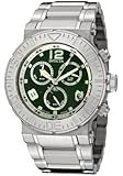 - Green sand stone dial with silver-tone hands and hour markers; Luminous; Unidirectional bezel; Screw-down crown and pushers