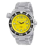 - Yellow textured dial with luminous hands and hour markers; black unidirectional bezel with diver lock; screw down crown; black sweeping second hand